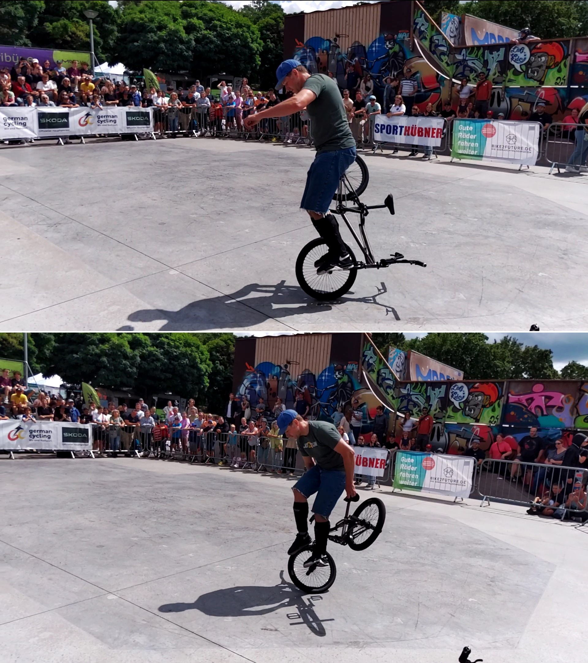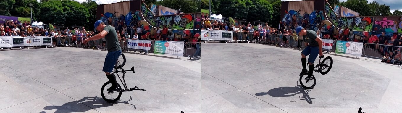 Mit dabei war auch Jan Schmidt vom VR Münster. Er ist seit über 30 Jahren im BMX Flatland aktiv und übt seit mittlerweile 6 Jahren in der Wintersaison im Vereinsheim am Bahnhof. Das Training ohne Winterpause war eine große Hilfe in der Vorbereitung und so konnte er sich am Freitag als zweiter von 14 Teilnehmern in der Amateur Flatland-Klasse für das Finale am Samstag qualifizieren. Dort lief es dann sogar noch besser und nur zwei kleine Fehler in 2:30 Minuten waren in Verbindung mit Schwierigkeitsgrad und Bandbreite der Tricks ausreichend für den ersten Platz.
